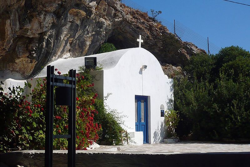 Όπως υποδεικνύει η ονομασία του, το εκκλησάκι του Άη Γιάννη βρίσκεται στην είσοδο του σπηλαίου της Αντιπάρου. Έχει δώσει το όνομά του σε ολόκληρη την τοποθεσία, η οποία ονομάζεται "βουνάλι του Άη Γιάννη" ή "Αγιογιαννίτικο βουνό". Επικοινωνεί εσωτερικά με το μικρότερο και παλαιότερο εκκλησάκι (350 ετών) της Ζωοδόχου Πηγής.