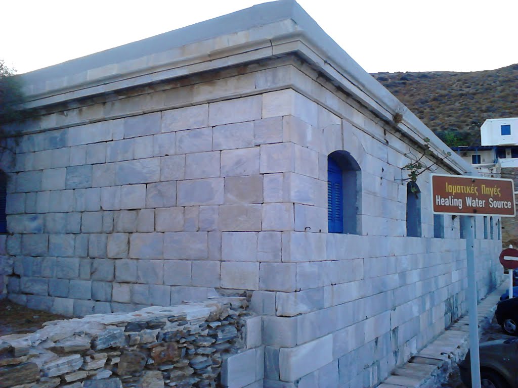 Τα Λουτρά λοιπόν που τα τελευταία χρόνια έχουν αξιοποιηθεί τουριστικά φιλοξενούν τις μοναδικές ιαματικές πηγές των Κυκλάδων. Πρόκειται για δύο θερμές πηγές. Η μία, των Αγίων Αναργύρων, είναι αλατούχα και βρίσκεται μέσα στο υδροθεραπευτήριο που λειτουργεί εδώ και πολλά χρόνια προσελκύοντας μεγάλο αριθμό επισκεπτών. Η δεύτερη, η επονομαζόμενη πηγή του Κάκαβου, βρίσκεται σε απόσταση 50 μ. από την πρώτη, περιέχει ιωδιούχο, βρωμιούχο και χλωριούχο νάτριο και η θερμοκρασία της φτάνει τους 52 βαθμούς Κελσίου.. Έχει αποδειχθεί ότι τα νερά των πηγών ενδείκνυται για τη θεραπεία ρευματικών, αρθριτικών και γυναικολογικών παθήσεων. Το υδροθεραπευτήριο των λουτρών, είχε επισκεφθεί στο παρελθόν ο βασιλιάς Όθωνας και η σύζυγός του Αμαλία.