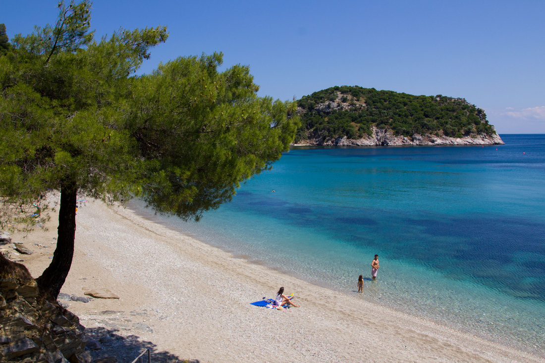 Αμμώδης παραλία με καθαρά νερά στην καρδιά ενός πευκόφυτο κόλπου στα νότια του νησιού. Απέχει 4.5 χλμ από την Χώρα της Σκοπέλου και είναι οργανωμένη με ομπρέλες, ξαπλώστρες, beach bar και ναυαγοσώστη.