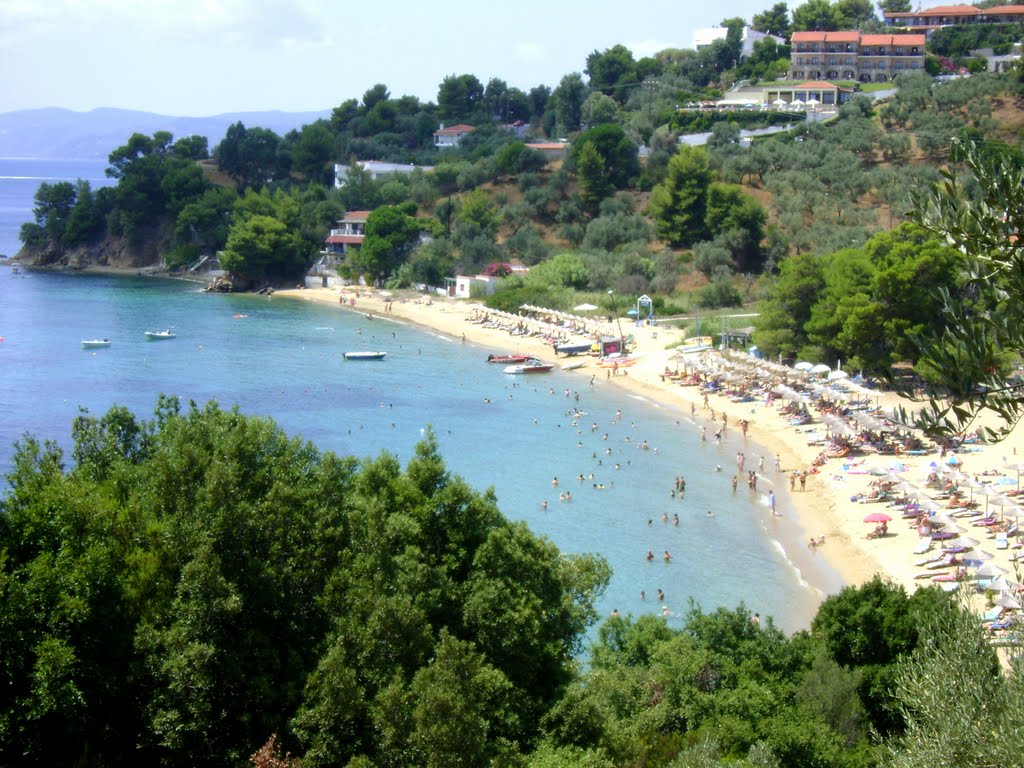 Στο δυτικό άκρο του ακρωτηρίου Καλαμάκι και μπροστά από ένα, ξερό πια, έλος βρίσκεται μια πανέμορφη παραλία, με ήρεμα κρυστάλλινα νερά και υπέροχη λεπτή άμμο. Είναι μια παραλία γεμάτη κίνηση και ζωή που συγκεντρώνει πολύ νεολαία.  Δίπλα στο κύμα υπάρχουν ταβέρνες και καφετέριες, γήπεδο Beach Volley και προσφέρεται η δυνατότητα για θαλάσσια σπορ. Στο Βρωμόλιμνο μπορείται να πάτε οδικώς, αλλά και πολλές φορές με πλοιάρια που ξεκινούν από το λιμάνι της Σκιάθου.