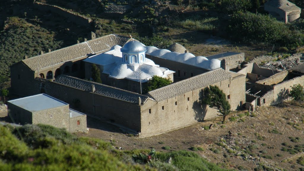 The Monastery of Panagia is dedicated to the Assumption. It is located 10 km. far from the city. It is estimated that it was built in 1780. The architect of the church was Roumeliotis who built the church to resemble the monasteries of Mount Athos. When the island was being destroyed, the Turks set the Church on fire to destroy and loot it. However, the monastery was spared temporarily thanks to beehives that the monks threw at the enemy. In the library of the monastery you can see rare manuscripts and books printed in Venice and Moscow. There was also a picture of the Virgin Mary signed by Dominikos Theotokopoulos (also known as El Greco). The inhabitants who escaped the destruction of the island wanted to save the painting and thus, took it to Syros where it can still be seen nowadays.