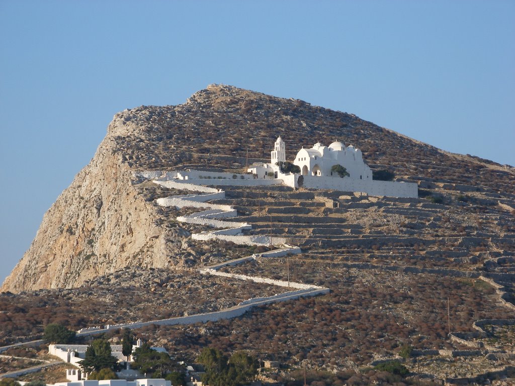This is the largest church of Folegandros, dedicated to the Assumption. It is built on a cliff above the main town, probably at the location of an Ancient Temple. In the courtyard and inside the church you will see ancient inscriptions, sculptures and bases of statues. Also, there is a marble inscription of 1687 which refers to the renovation of the temple. Reconstructions of the church as we know it today started in 1816 and ended in 1821.
