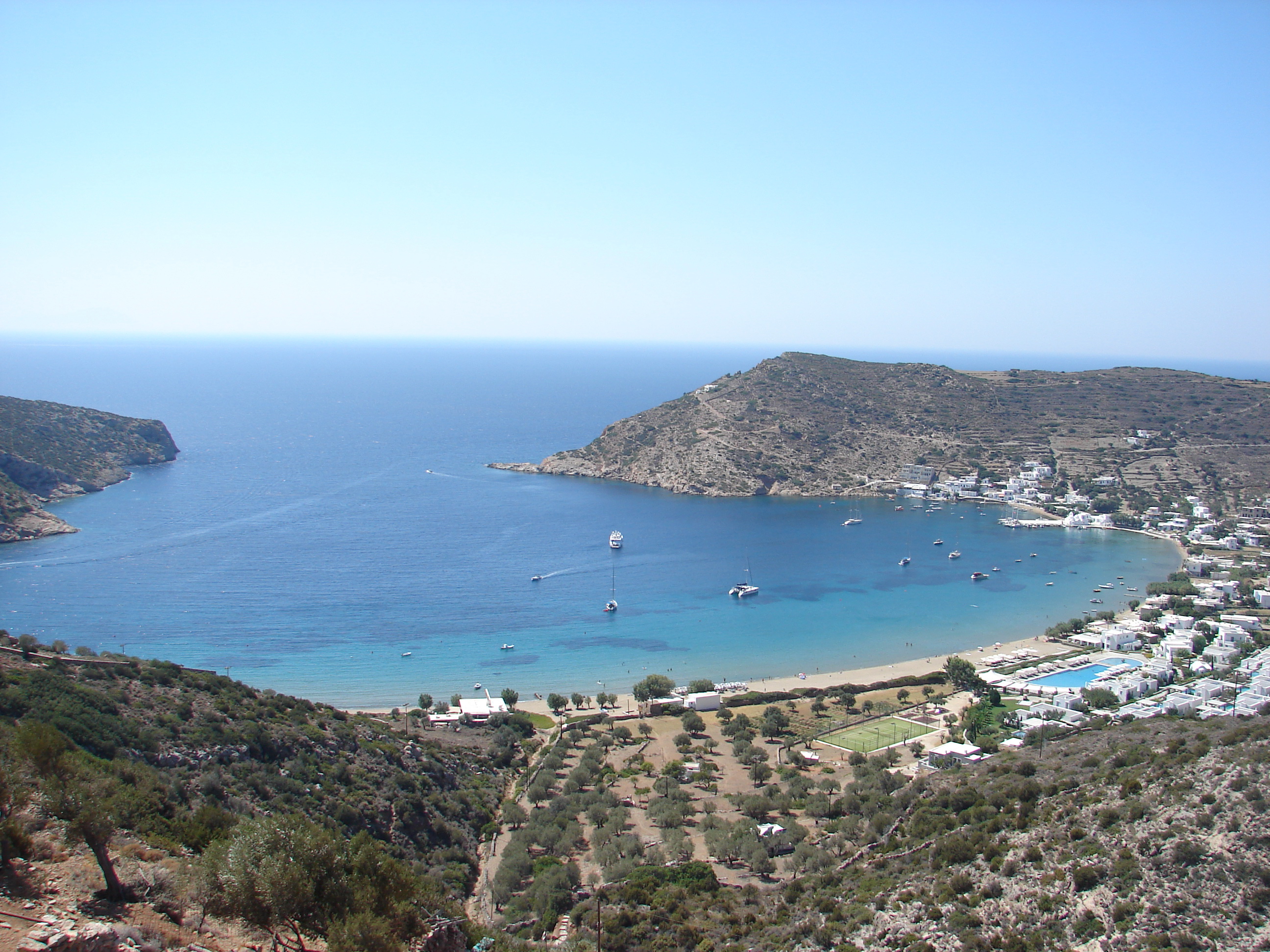 This is one of the most beautiful and largest sandy beaches of the island. It is 10 km. far from Apollonia, the capital. Here you can find rooms to let, restaurants, grocery stores, cafes, etc. On the beach you will also see the beautiful chapel of the Archangels (16th century). A huge festival takes place there three times a year (July, September and November).