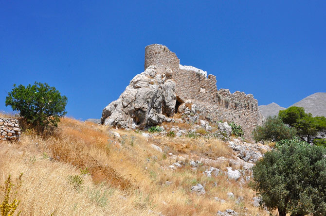 Στην κορυφή μικρού λόφου, σε απόσταση 4 χλμ. βορειοδυτικά από το λιμάνι της Καλύμνου, βρίσκονται τα απομεινάρια ένός κάστρου που χρησίμευε ως παρατηρητήριο. Ήταν γνωστό με τις ονομασίες Χρυσοχεριά, Πέρα Kάστρο και Χρυσοσερζά. Έξω από το κάστρο σώζονται τρεις ανεμόμυλοι που χρονολογούνται μετά το 1522. Ο χώρος είναι ανοιχτός και ελεύθερος για επισκέψεις.