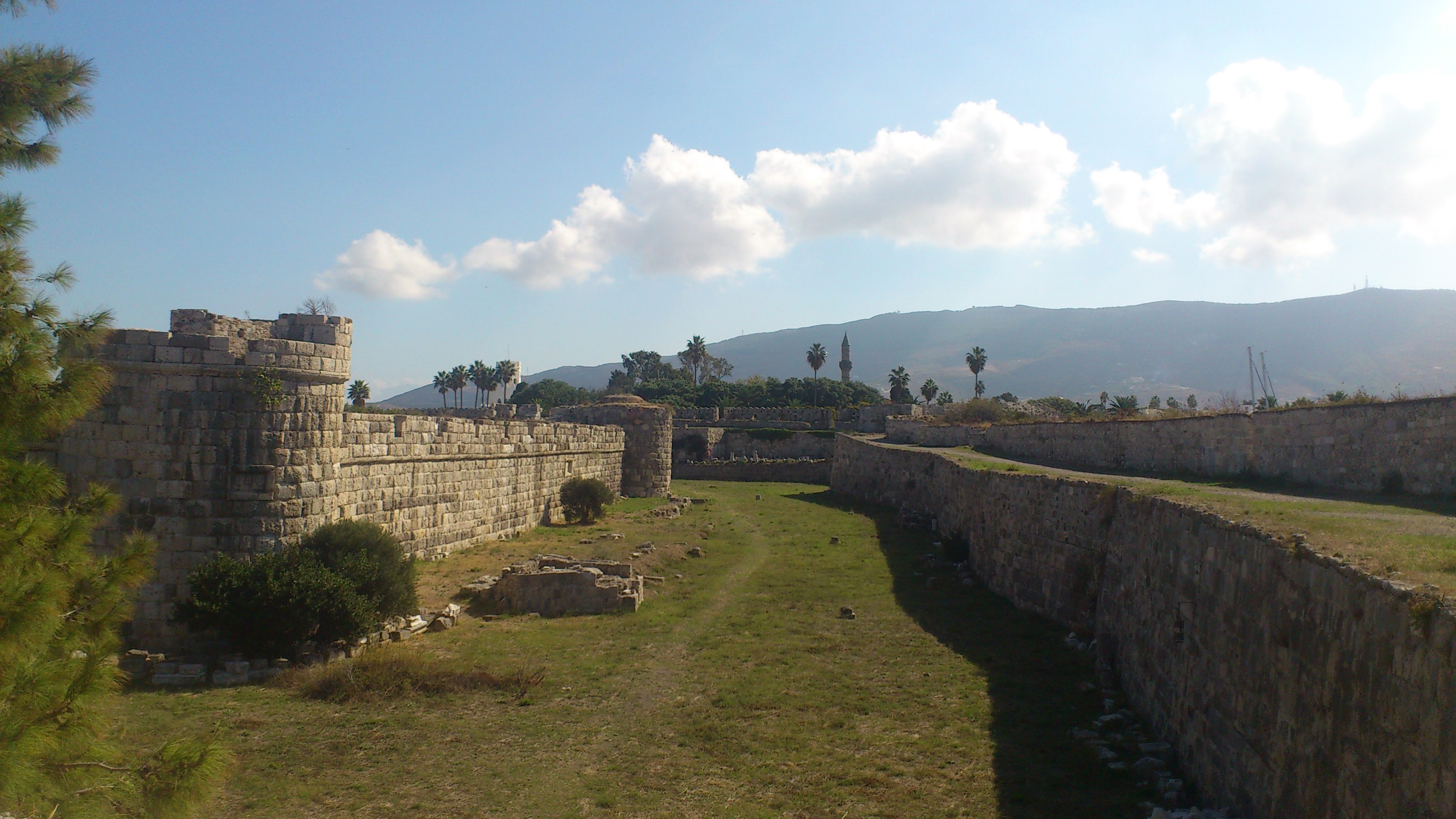 Bρίσκεται στην είσοδο του λιμανιού της Kω, σε χώρο που στην αρχαιότητα ήταν νησί και συνδεόταν με την ξηρά μέσω γέφυρας, η οποία σώζεται μέχρι σήμερα (γέφυρα οδού Φοινίκων). Aποτελείται από δύο οχυρωματικούς περιβόλους, τον εσωτερικό και τον εξωτερικό. O εσωτερικός έχει τέσσερεις κυκλικούς πύργους στις γωνίες, από τους οποίους ο NA έχει ενσωματωθεί στο τείχος του εξωτερικού περιβόλου. O εξωτερικός περιβάλλει τον πρώτο, είναι μεγαλύτερος, με ογκώδεις προμαχώνες στις τέσσερις γωνίες, επάλξεις και κανονιοθυρίδες. Oι δύο περίβολοι χωρίζονται με πλατιά τάφρο και επικοινωνούν με επικλινή γέφυρα.