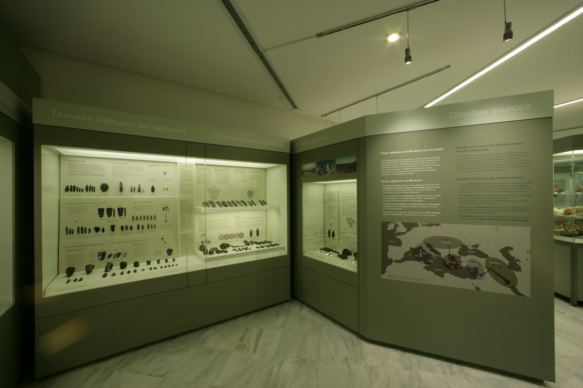 Στην αίθουσα του ισογείου παρουσιάζεται η κοινωνική, οικονομική και τεχνολογική διάσταση της μεταλλευτικής ιστορίας και παράδοσης της Μήλου.  Η έκθεση του πρώτου ορόφου είναι αφιερωμένη στο φυσικό και γεωλογικό πλούτο του νησιού, όπου παρουσιάζονται τα ορυκτά που εξορύσσονταν στο νησί από τη νεολιθική εποχή μέχρι και τα σημερινά βιομηχανικά ορυκτά, με ιδιαίτερη έμφαση στις χρήσεις τους στην καθημερινή μας ζωή. Συμπληρωματικά, προβάλλονται ταινίες για την εξόρυξη και διαδικασία παραγωγής των ορυκτών, ενώ στην αίθουσα προβολών, οι επισκέπτες «ταξιδεύουν» σε παλαιότερες εποχές μέσα από τις αφηγήσεις των παλαιών μεταλλωρύχων.