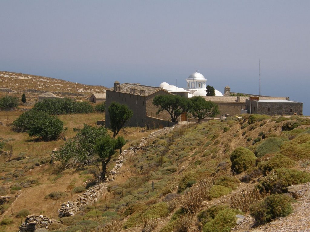 Το Μοναστήρι της Παναγίας είναι αφιερωμένο στην Κοίμηση της Θεοτόκου. Βρίσκεται 10 χλμ. από την πόλη. Υπολογίζεται ότι χτίστηκε το 1780 σε θέση που προηγουμένως υπήρχε ένα μικρό εκκλησάκι. Ο αρχιτέκτονας του ναού ήταν Ρουμελιώτης και τον έκτισε όμοιο με τους ναούς του Αγίου Όρους. Στην καταστροφή του νησιού οι Τούρκοι έβαλαν φωτιά για να το καταστρέψουν και να το λεηλατήσουν. Όμως το μοναστήρι γλίτωσε προσωρινά χάρη στα μελίσσια που πέταξαν οι καλόγεροι στον εχθρό. Στην βιβλιοθήκη της Μονής σώζονται σπάνια χειρόγραφα και ιερατικά βιβλία τυπωμένα στην Βενετία και στην Μόσχα. Υπήρχε και μια εικόνα της Κοιμήσεως της Θεοτόκου με την υπογραφή του Δομίνικου Θεοτοκόπουλου (Ελ Γκρέκο). Οι Ψαριανοί που γλύτωσαν στην καταστροφή θέλοντας να την περισώσουν την μετέφεραν στη Σύρο όπου υπάρχει και μέχρι σήμερα στο ναό της Κοίμησης η Παναγιά των Ψαριανών.