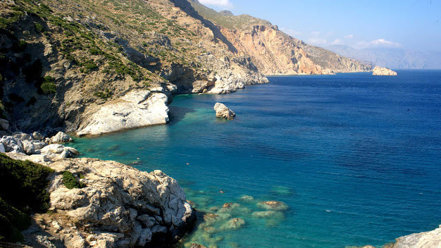 Παγωμένα νερά, βυθός με βότσαλα και άμμο ενώ από πάνω της δεσπόζει η μεσαιωνική μονή της Χοζοβιώτισσας, γαντζωμένη από τους απόκρημνους βράχους. Βρίσκεται στην ανατολική πλευρά του νησιού, πολύ κοντά στη Χώρα.