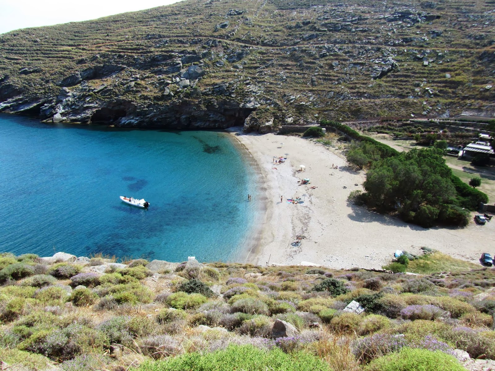 Πανέμορφη παραλία με βαθιά, καταπράσινα νερά. Βρίσκεται στην ανατολική ακτή του νησιού. Στο άκρο της παραλίας υπάρχει μια μεγάλη σπηλιά, ενώ ο βράχος "Μύτακας" προσφέρεται για βουτιές από ψηλά.
