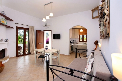 Anespassia is a unit of independent residences that are open throughout the year. The uniqueness of the accommodation lies in the traditional and luxurious architecture of the rooms, the thoughtful decoration and the comforts that satisfy even your most demanding needs. Each unit is insulated and soundproofed, in the window frames and includes a bedroom with a double bed, a living room with a sofa bed and dining area, individual air conditioning, a kitchen with all cooking utensils and a fridge, a bathroom, a washing machine, LCD TVs and wireless internet access. All have a private entrance with a private yard, some with a veranda, while communal space with a BBQ and a wood-burning oven awaits you for pleasant moments. Private car park is available at the facility.