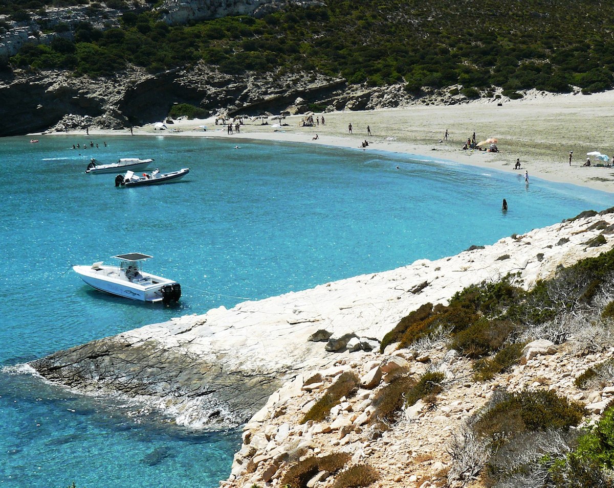 This is an uninhabited island of archaeological interest and with hidden beaches. You can access it by a private yacht or by tourist boat from Agios Georgios (daily and frequent itineraries)