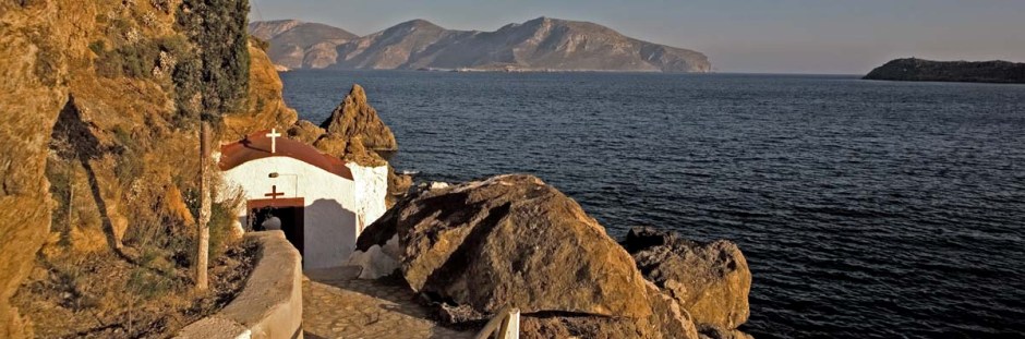 At Xirokampos you can see the picturesque church of Panagia Kavouradena, which is thought to be the most beautiful church of the island. It is built on the rocks of the coast, at a place where according to tradition, a fisherman looking for crabs in the rocks found the painting of the Virgin instead.