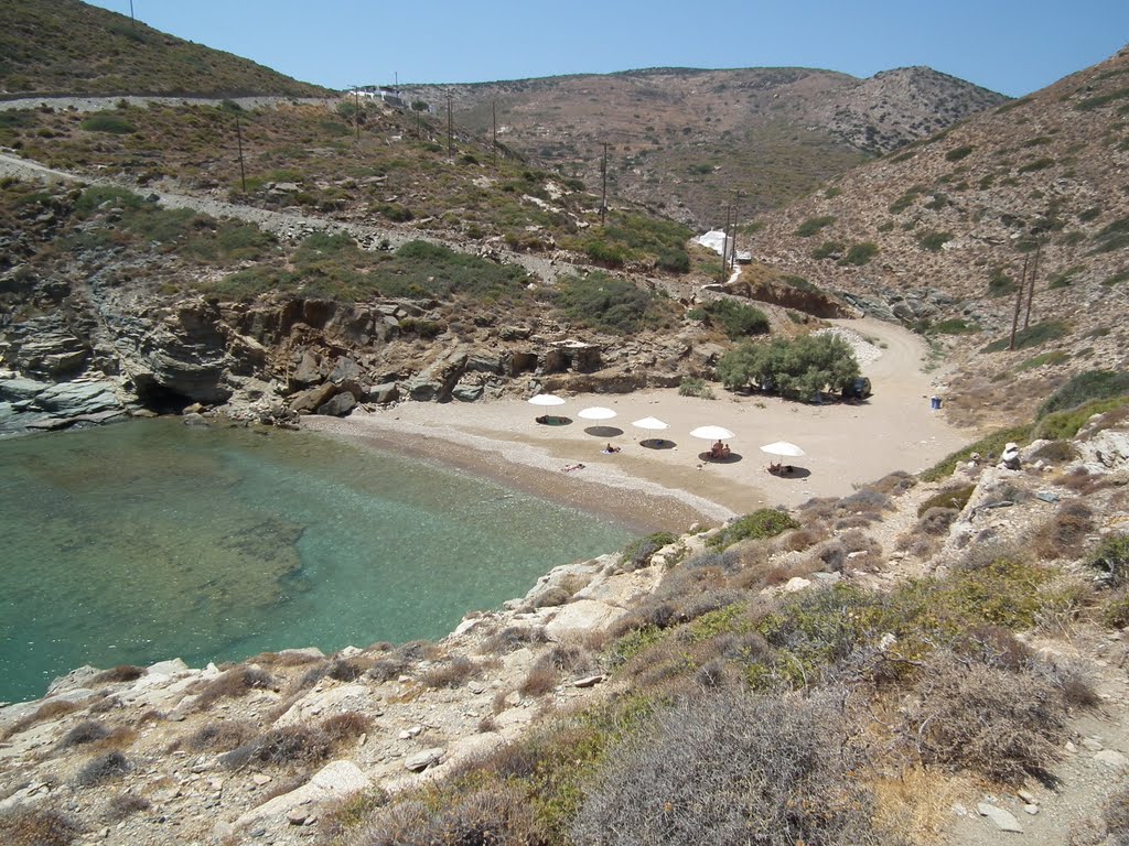 Dialiskari is situated between Alopronoia and Ayios Georgios and is accessible by car via a dirt road. The beach has sand, pebbles and some tamarisk trees for shade.
