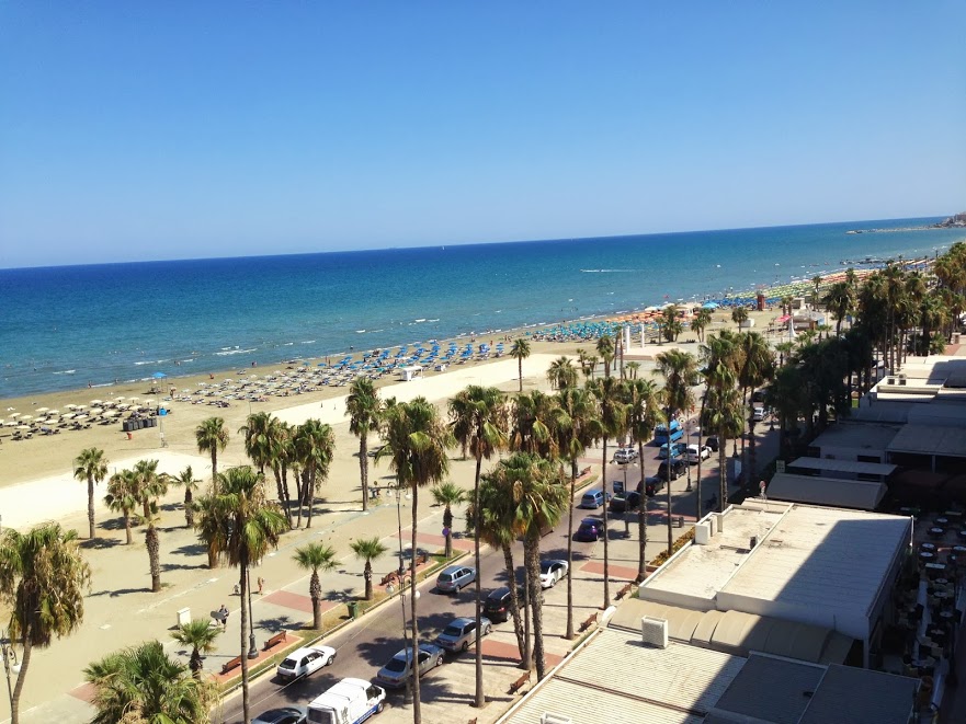 Finikoudes Beach is located at Larnaca and is considered one of the most popular beaches of Cyprus. "Finikoudes " means small palm trees but as they were planted in 1922, they are now big trees). The beach has fine gray sand and it is 500 meters long and 30 to 100 meters wide. The place is known for its cafes, bars, restaurants and hotels. Also, in the surroundings you can find several small grocery stores and kiosks. The main street of the city is Athens Avenue which is beautifully decorated with palm trees and flower beds.