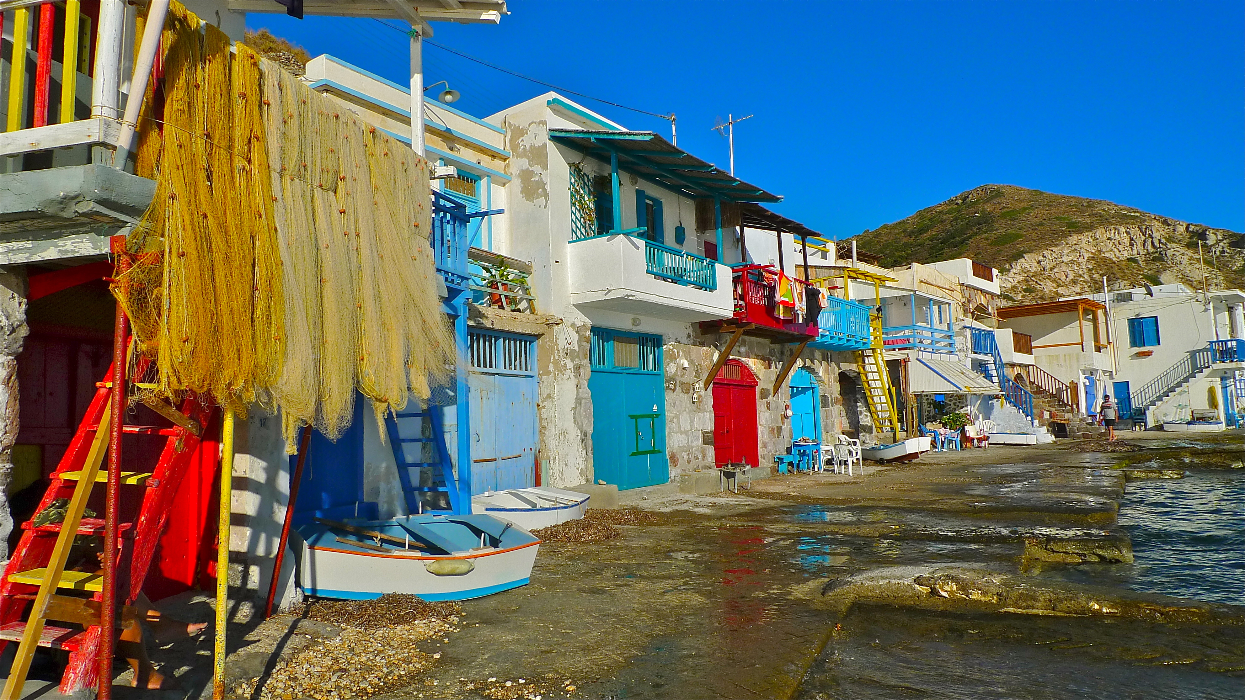 This is a traditional fishing village with very few inhabitants and multi-coloured two-storeyed houses in the natural concavities of the rocks. The family lived on the first floor while on the ground floor, known as "syrmata", the fishermen kept their boats. Nowadays, the majority of "syrmata" are for rent.