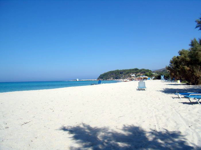 It is located just outside Armenistis village, next to Livadi beach, in the northwestern part of the island. It is a long, sandy beach with crystal clear waters. Two rivers unite on the beach and create small ponds. On the beach you can find umbrellas, sun beds and a canteen.
