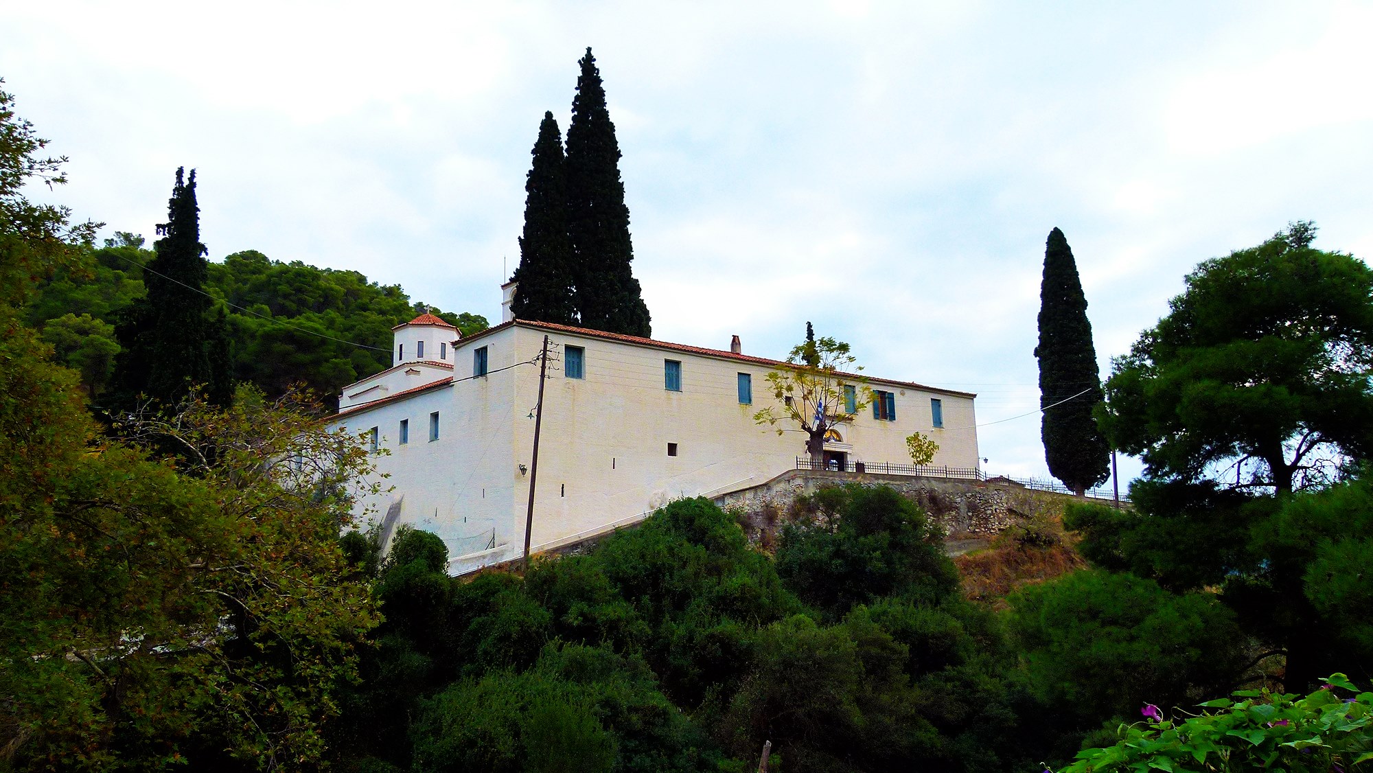 The Monastery of Zoodochos Pigi, a unique sample of monastery architecture of the island, is located just 4,080 meters from the center of Poros (Heroes Square). It dates back to the 18th century and it is built on a hill. It takes its name from the only source of the island which, according to tradition, is known for its healing properties. The wooden temple of the monastery was painted in Cappadocia (Asia Minor) in the 17th century. In the monastery you will also see the painting of the Zoodochos Pigi (=Life Giving Fountain), which was painted around 1850 by the Italian painter Raphael Ceccoli. It is said that the painter came to the monastery with his sick daughter, who finally died and was buried in the churchyard. Her grave is still there today. Then Ceccoli painted the Virgin and gave her the sweet and beautiful figure of his beloved daughter.
