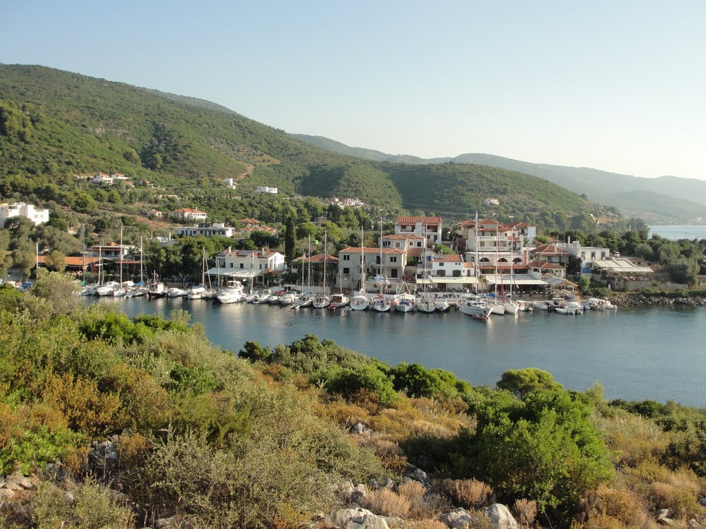 Steni Vala is a fishing village located on the southeast side of Alonissos, about 10 km from Patitiri. The path to this little village passes through dense pine forests and olive groves and offers magnificent views of the bays of the southeast coast. You will be impressed by the landscape as you will be following the winding road overlooking the sea and the uninhabited islands opposite the beach.