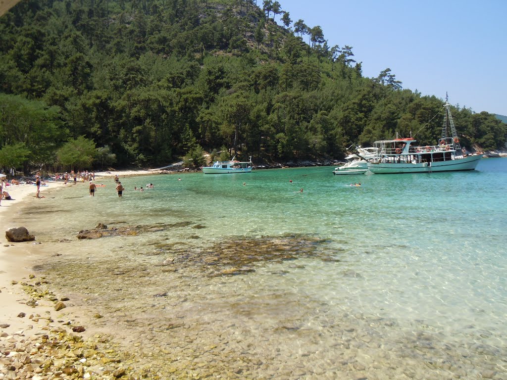 This is a beautiful beach on the northeast coast of the island. It is sandy and calm, surrounded by green hills. It is difficult to access by land (via a dirt road from Makryammos). You can go there by a tour boat or with your own private boat.
